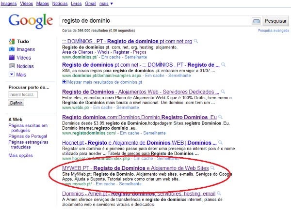Com buscas realizadas por "Registo de domínio"